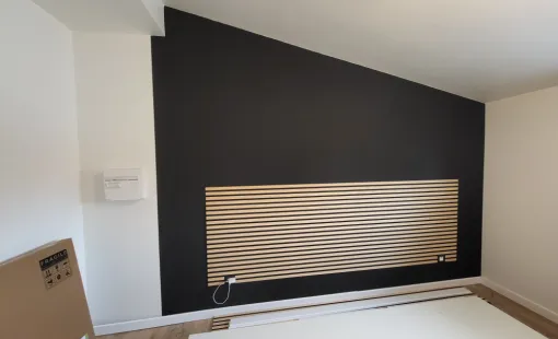Rénovation murs et plafonds. Dans une chambre.