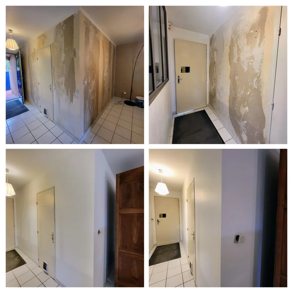 - Détapissage murs + ratissage + mise en peinture