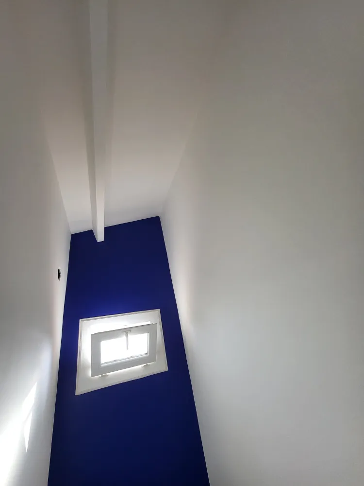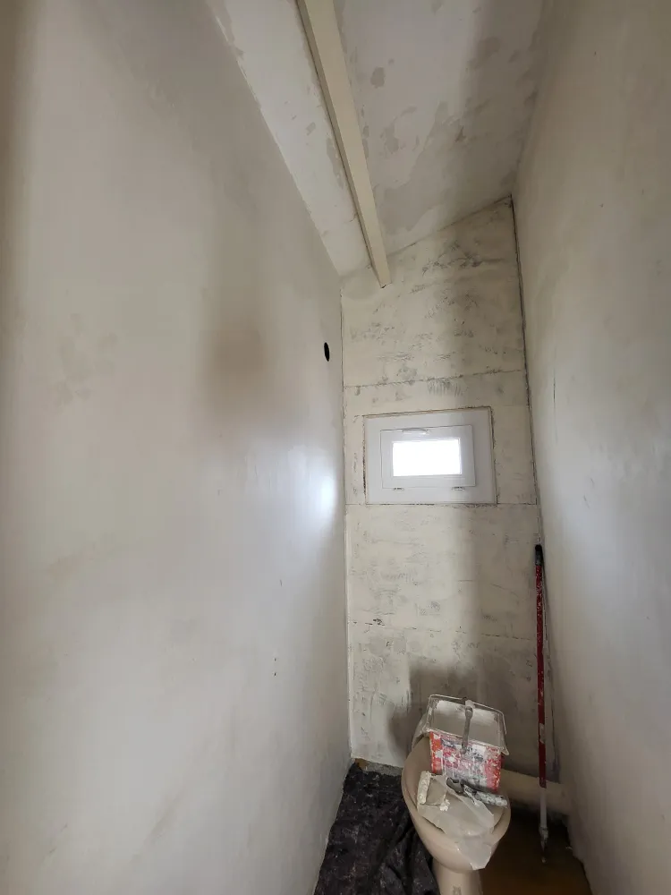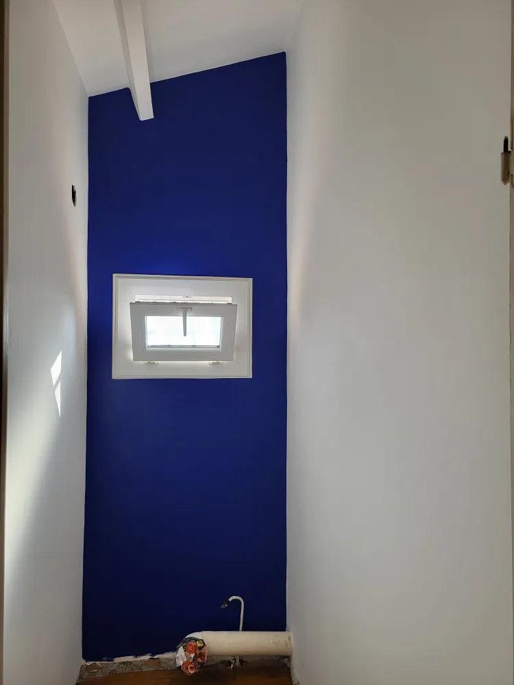 Nous avons appliqué une couche d'impression pour garantir une adhérence parfaite des couches de finition. Enfin, deux couches de finition ont été appliquées, apportant de jolies couleurs et une nouvelle vie aux chambres et au WC.
